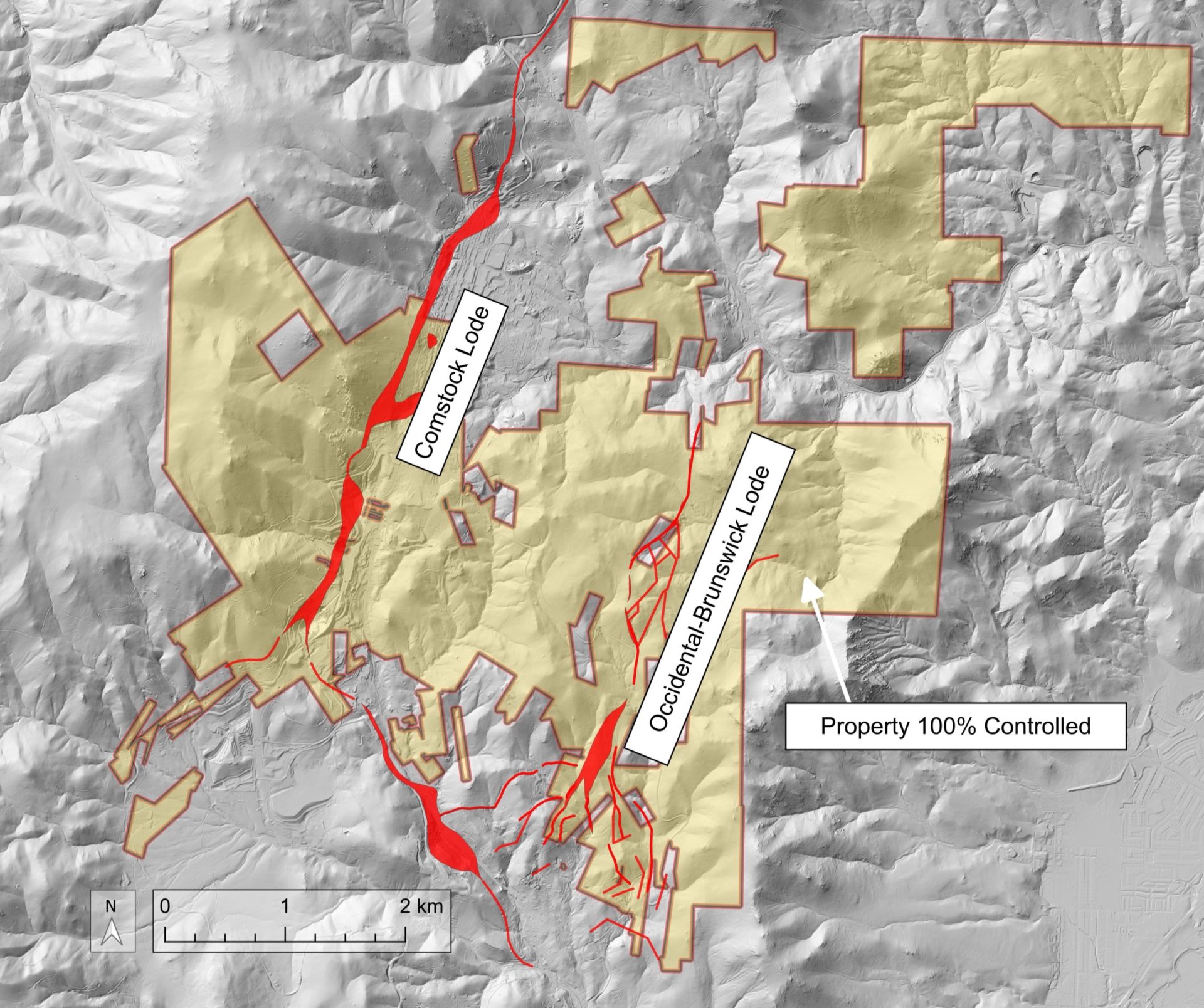 The Comstock District sits at the northern end of the highly productive Walker Lane gold belt. The Walker Lane is a 100-km wide by 500-km long, northwest-trending structural corridor extending from Reno towards Las Vegas along the Nevada-California border, renowned as a prolific, high-grade, epithermal, and intrusive-related mineral district. It has produced over 50 million ounces of gold and 700 million ounces of silver, with major deposits and mines that include Round Mountain, Silicon and the Comstock Lode.